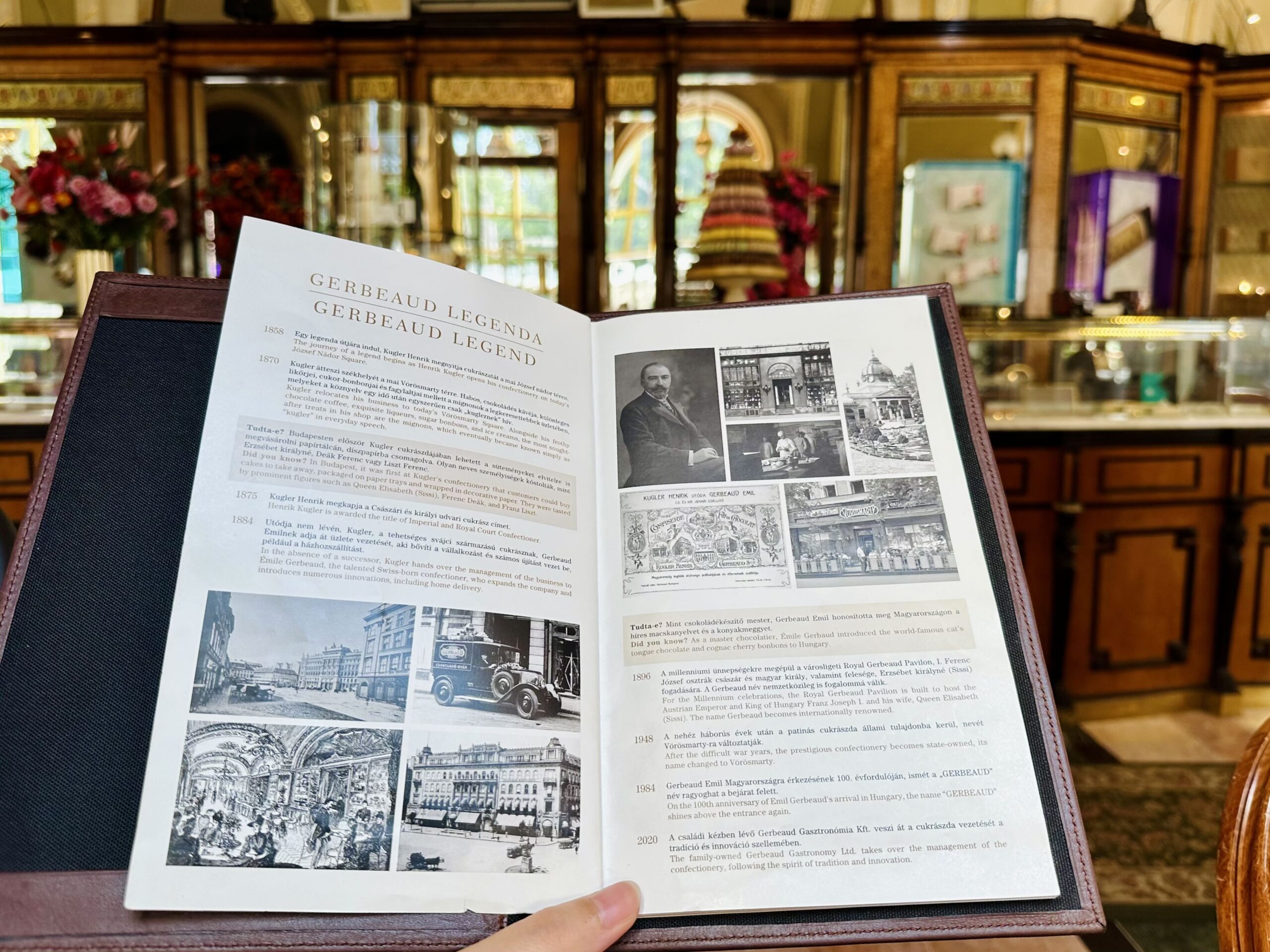 Cel care a înființat cafeneaua-cofetărie, în urmă cu aproape 170 de ani, a fost Kugler Henrik. Pe atunci, torturile luate la pachet reprezentau o inovație, iar bunătățile sale s-au bucurat de succes. Nu avea moștenitori, așa că l-a luat alături de el pe talentatul maestru cofetar Émile Gerbeaud, din Elveția, care a extins afacerea, inclusiv cu o fabrică de ciocolată, și a dus-o la un alt nivel.