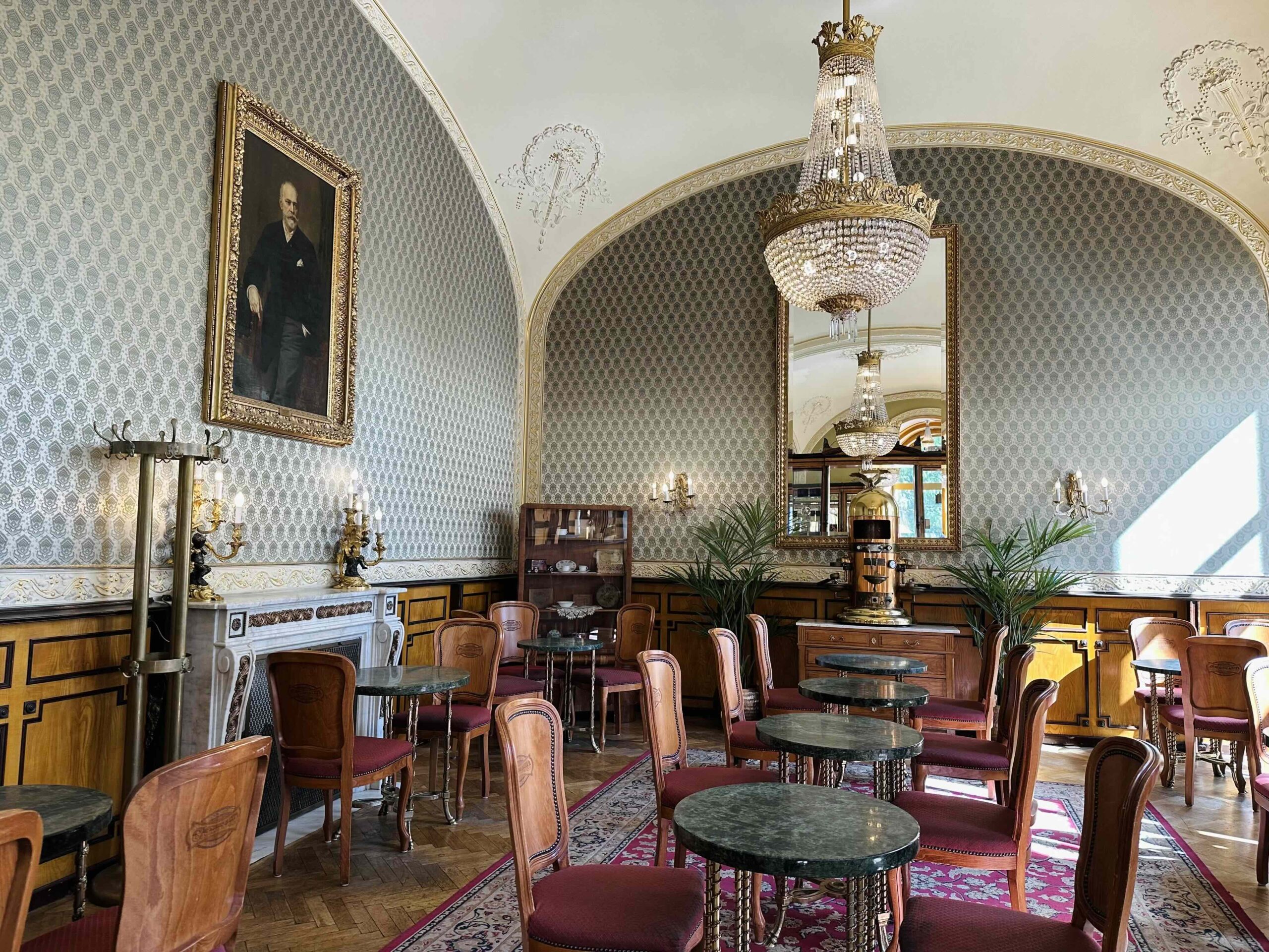 Cafeneaua istorică din Piața Vörösmarty îți oferă ocazia să admiri decoruri clasice majestuoase, mobilier din lemn, marmură și candelabre de cristal, dar mai ales să te delectezi cu deserturile casei în aceast atmosferă elegantă care pare desprinsă din alte vremuri. Cele ale încântătoarei Sissi, Elisabeta a Austro-Ungariei, Împărăteasa Austriei şi Regina Ungariei.