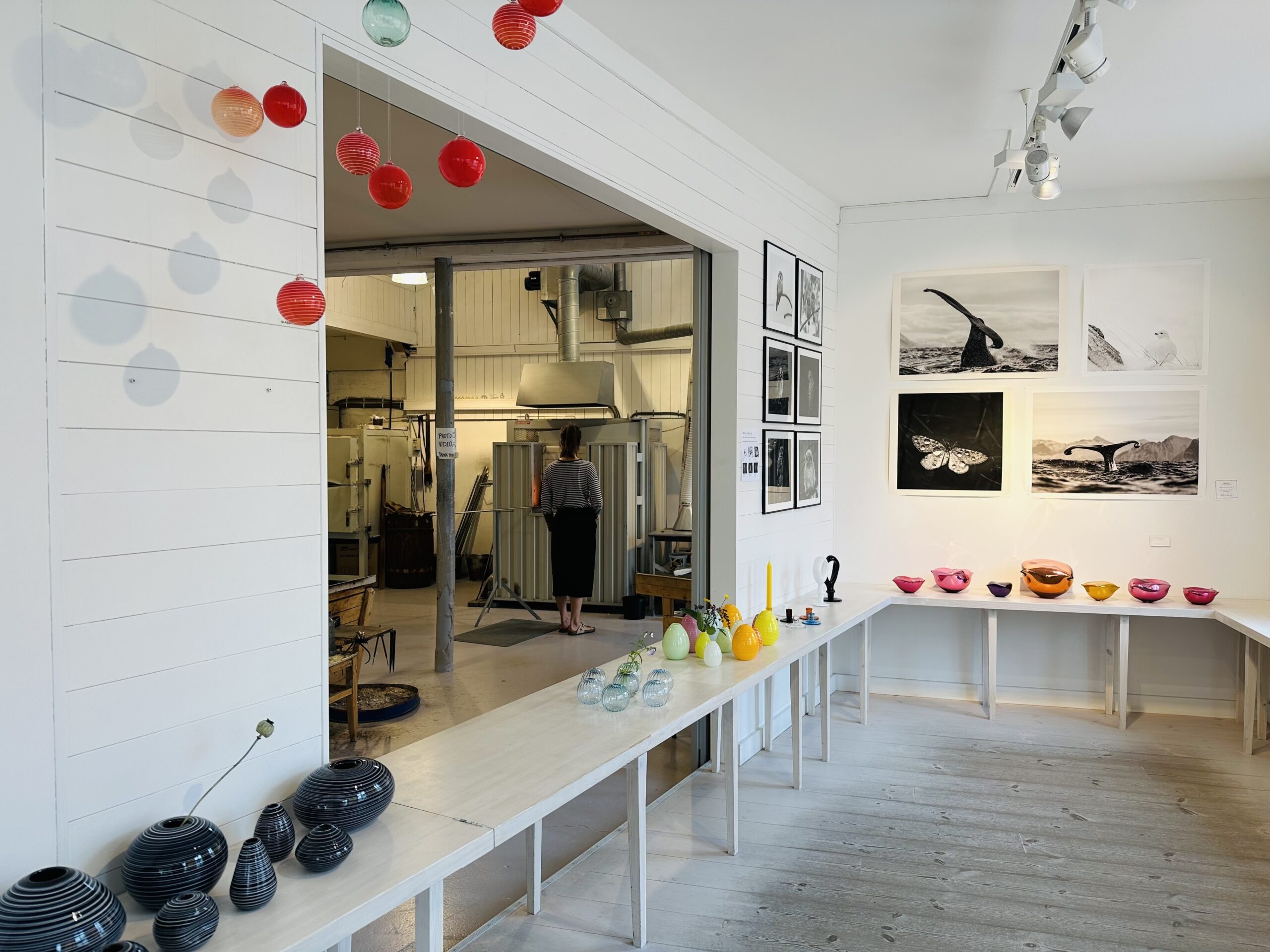 Henningsvaer, așezare cu vreo 500 de locuitori, de fapt un sat de pescari întins pe mai multe insule mici, este un alt hotspot cultural din Lofoten. Aici am vizitat Engelskmannsbrygga, o galerie cu obiecte din ceramică, sticlă și fotografie, amenajată într-o casă tipic norvegiană, roșie cu ferestre albe, pe malul fiordului. Iar cel mai frumos mi s-a părut că era o galerie deschisă, cu demonstrații live – puteai vedea încăperile unde lucrau artistele în ceramică sau suflau sticla.