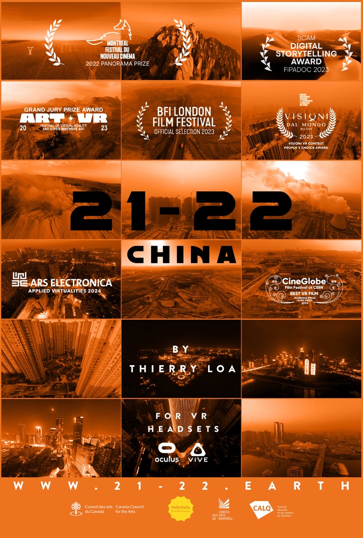 Iar „21–22 China”, producție canadiană, 2022, realizată de Thierry Loa, propune o călătorie vizuală prin peisajele Chinei contemporane – surprinde transformările rapide ale unei lumi aflate în plină urbanizare și industrializare. Filmul face parte dintr-o serie dedicată epocii Antropocenului și documentează impactul uman asupra mediului la scară globală.