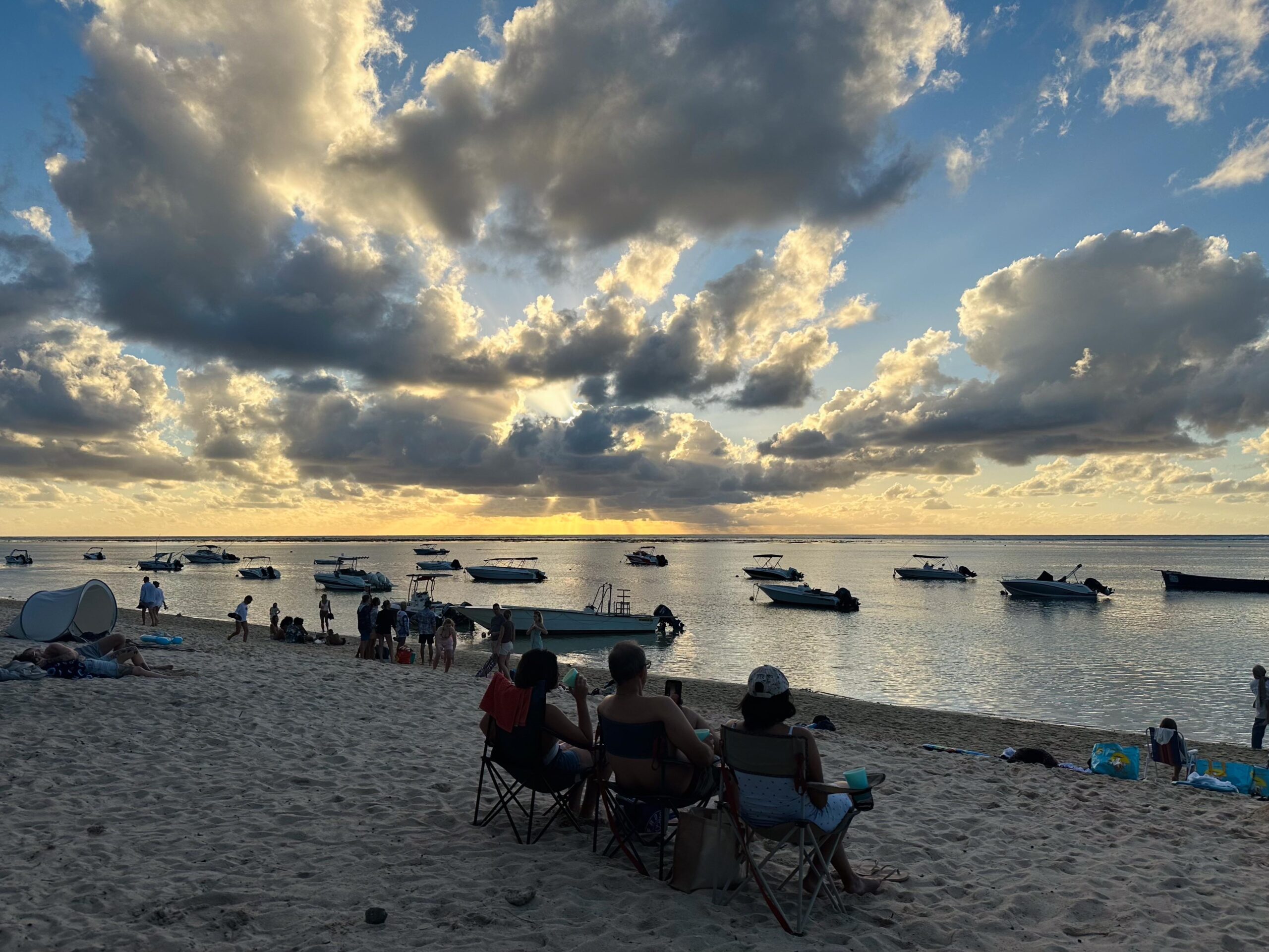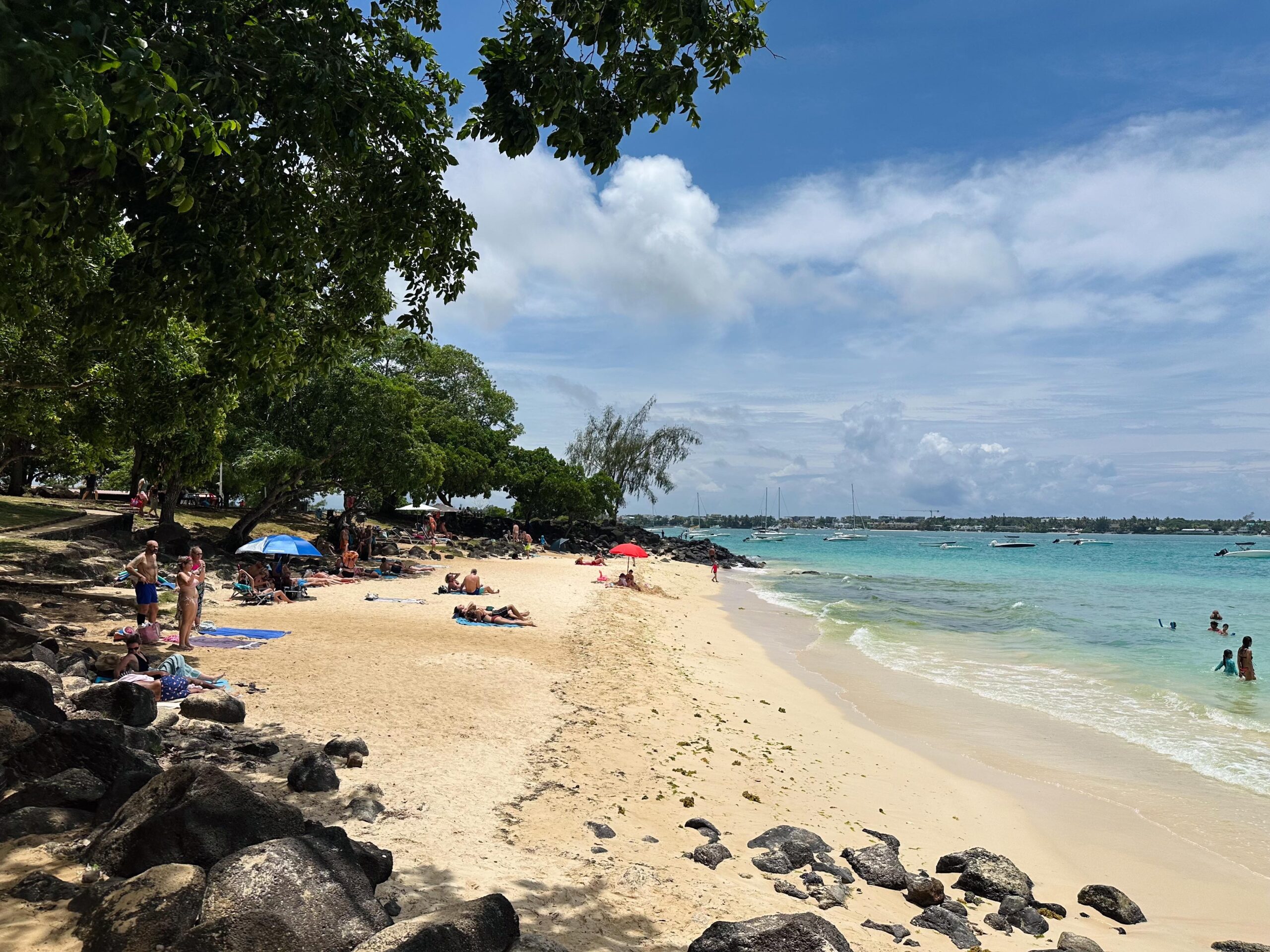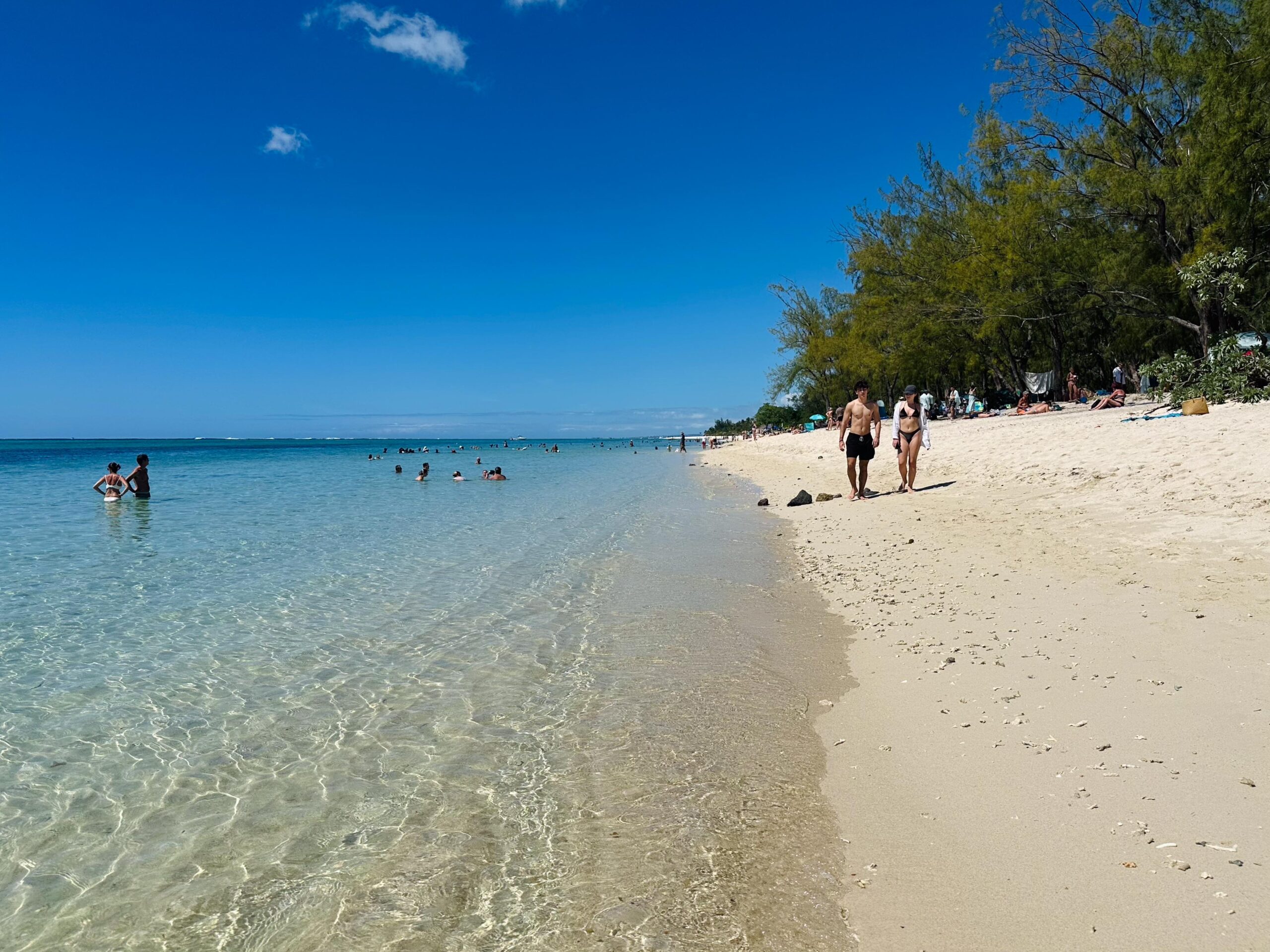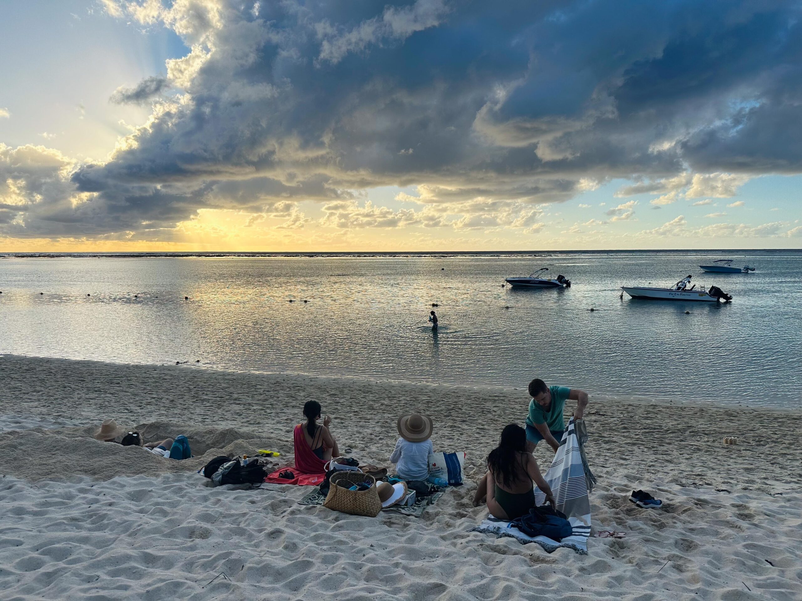 Revenind la plaja din Trou aux Biches, ne plac aici și plimbările la apus, când cerul și apa se colorează în roz. Ne place că sunt copaci și putem sta la umbră atunci când soarele arde prea tare. Ne place să vedem turiștii care joacă pétanque și ne plac întrunirile de familie ale localnicilor, pe plajă – ne bucurăm cu toții, împreună, de mare. Sunt foarte amabili, nimeni nu te deranjează și te simți în siguranță.