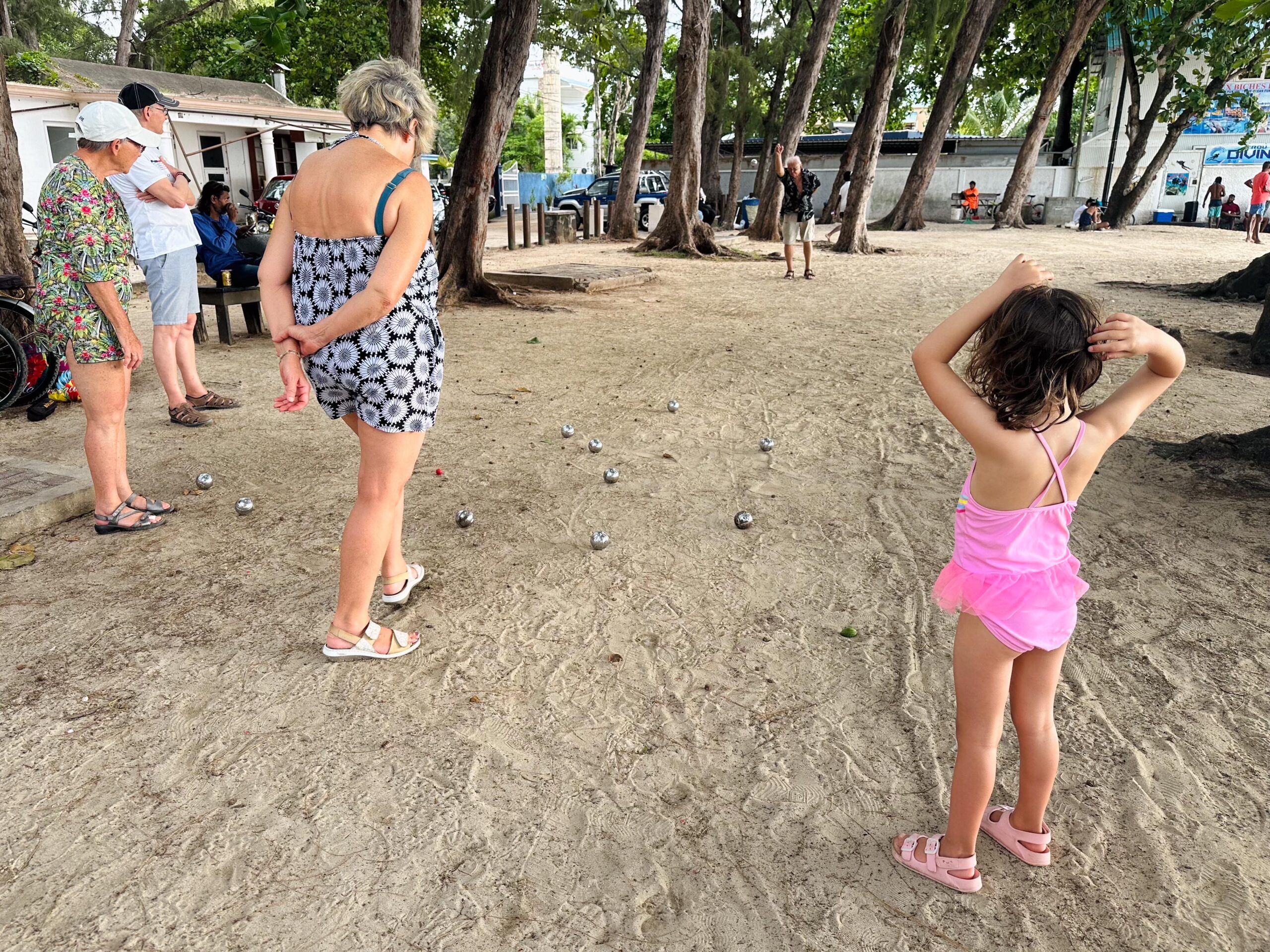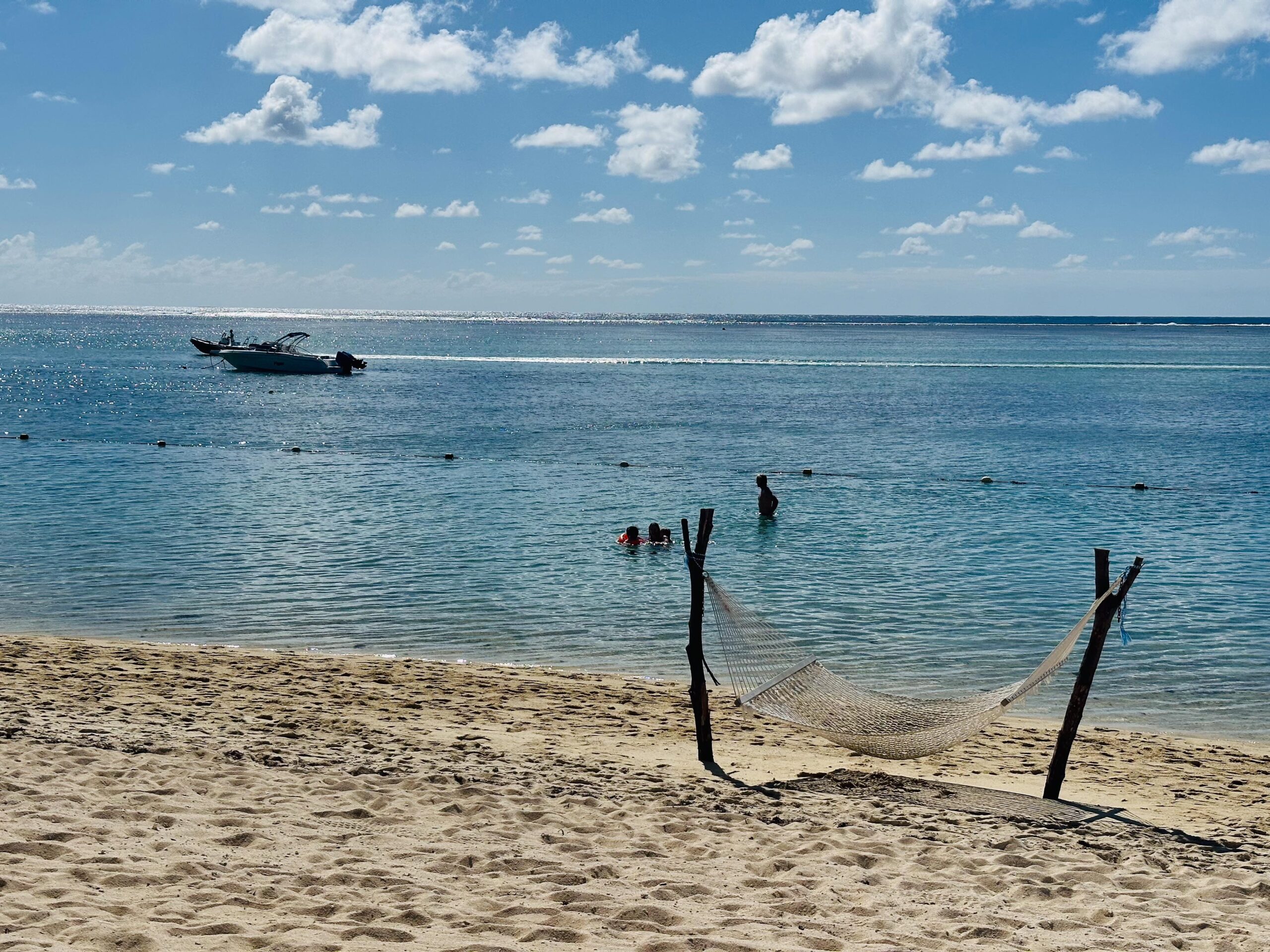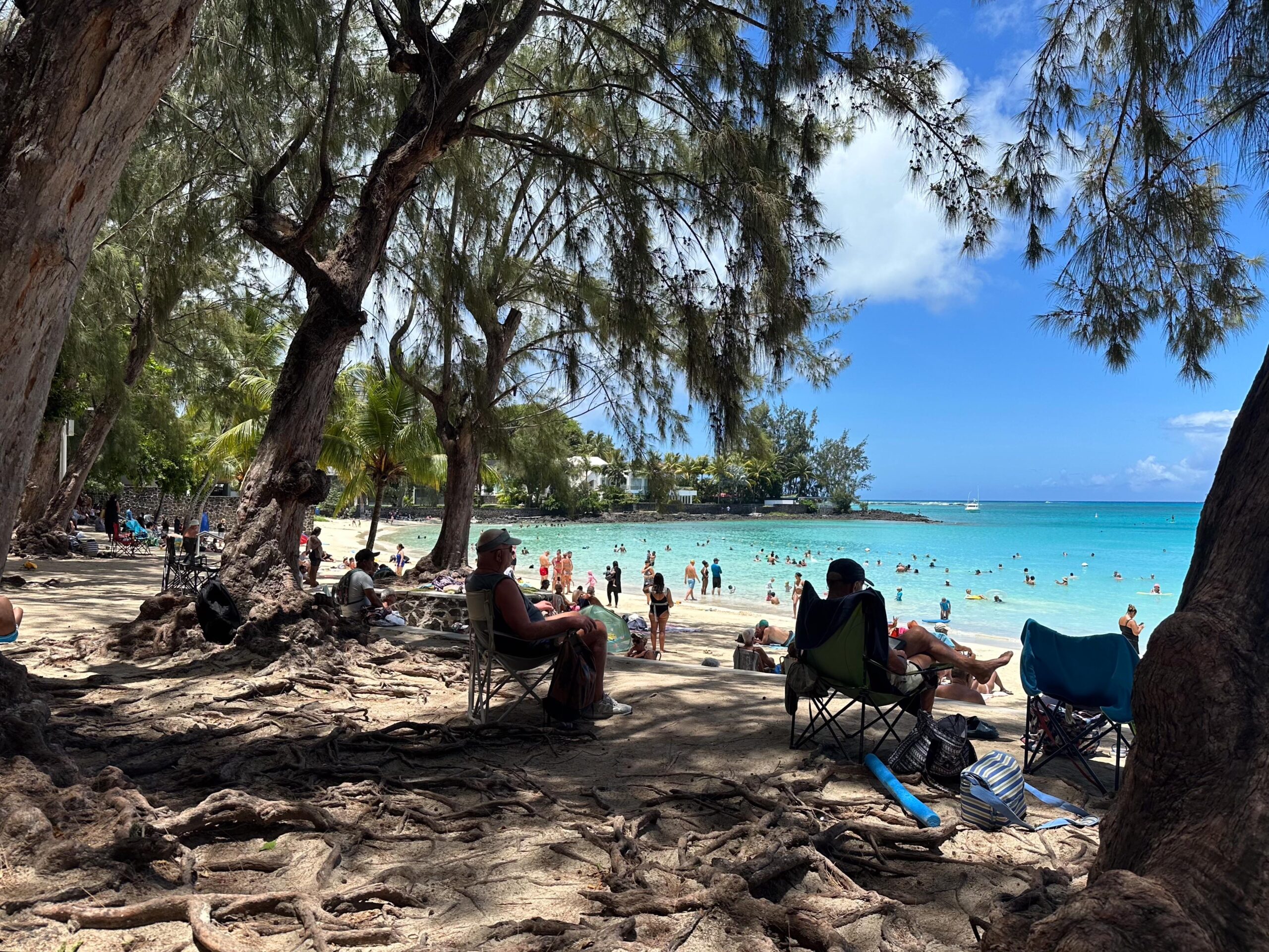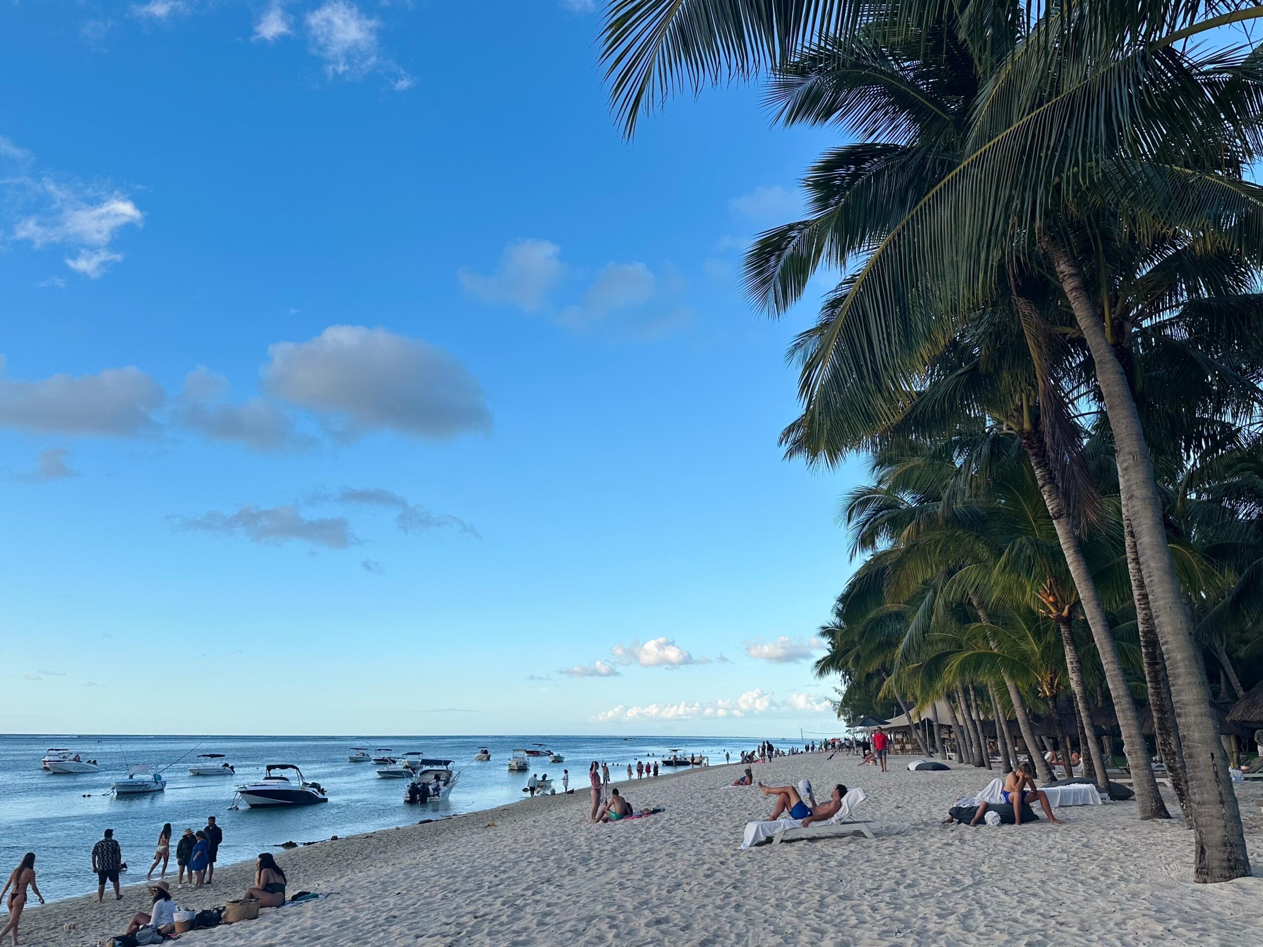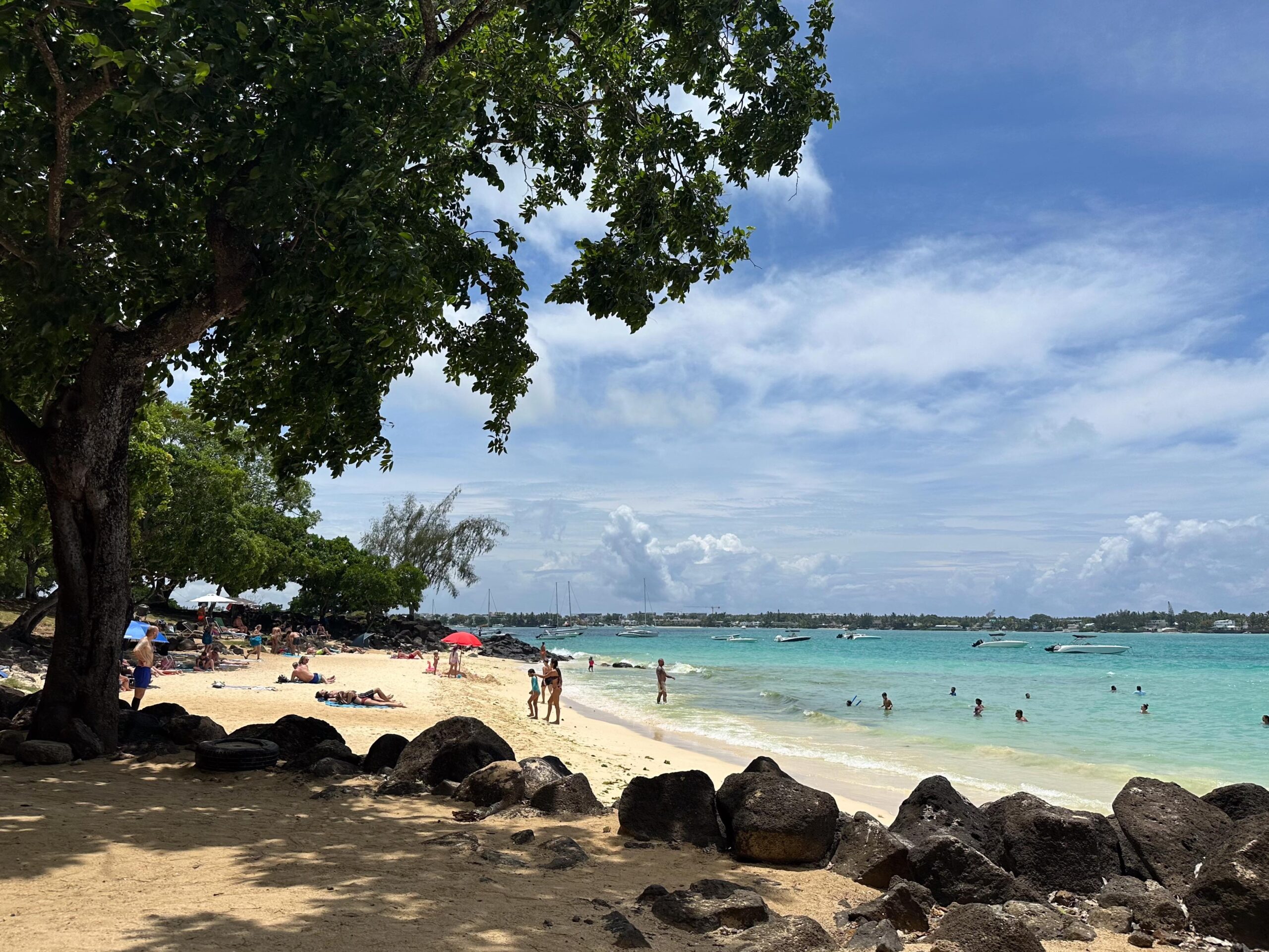 Revenind la plaja din Trou aux Biches, ne plac aici și plimbările la apus, când cerul și apa se colorează în roz. Ne place că sunt copaci și putem sta la umbră atunci când soarele arde prea tare. Ne place să vedem turiștii care joacă pétanque și ne plac întrunirile de familie ale localnicilor, pe plajă – ne bucurăm cu toții, împreună, de mare. Sunt foarte amabili, nimeni nu te deranjează și te simți în siguranță.