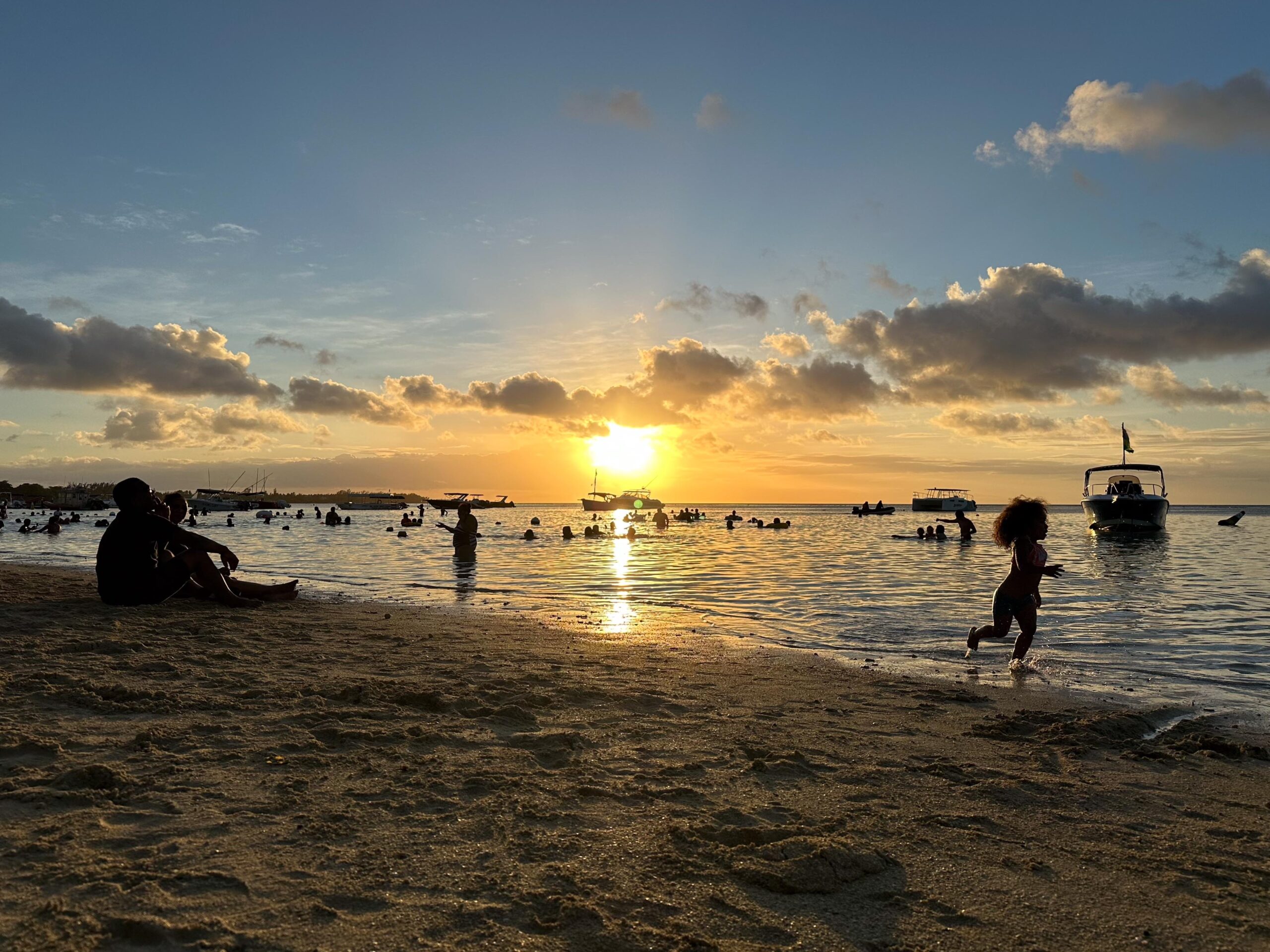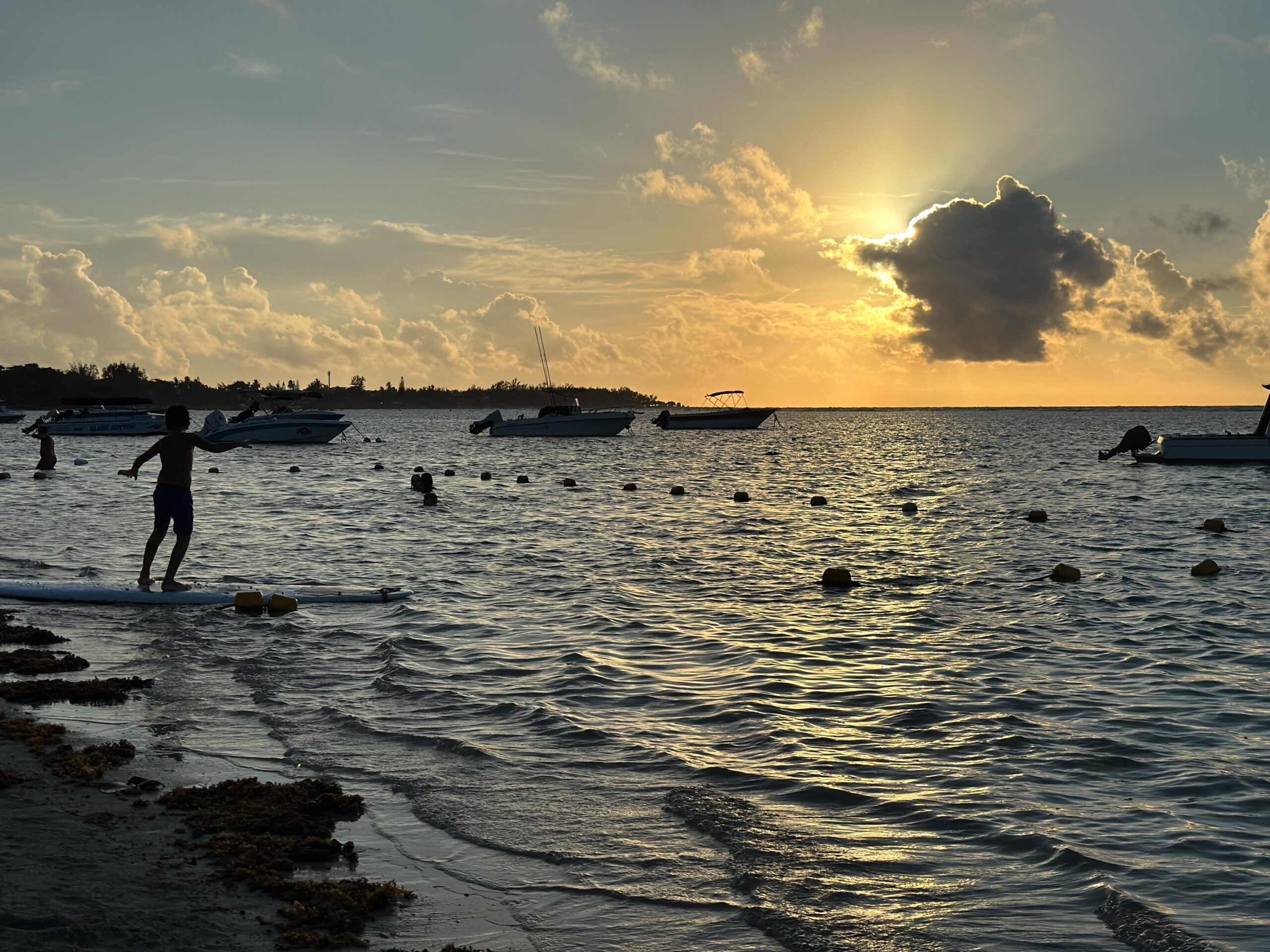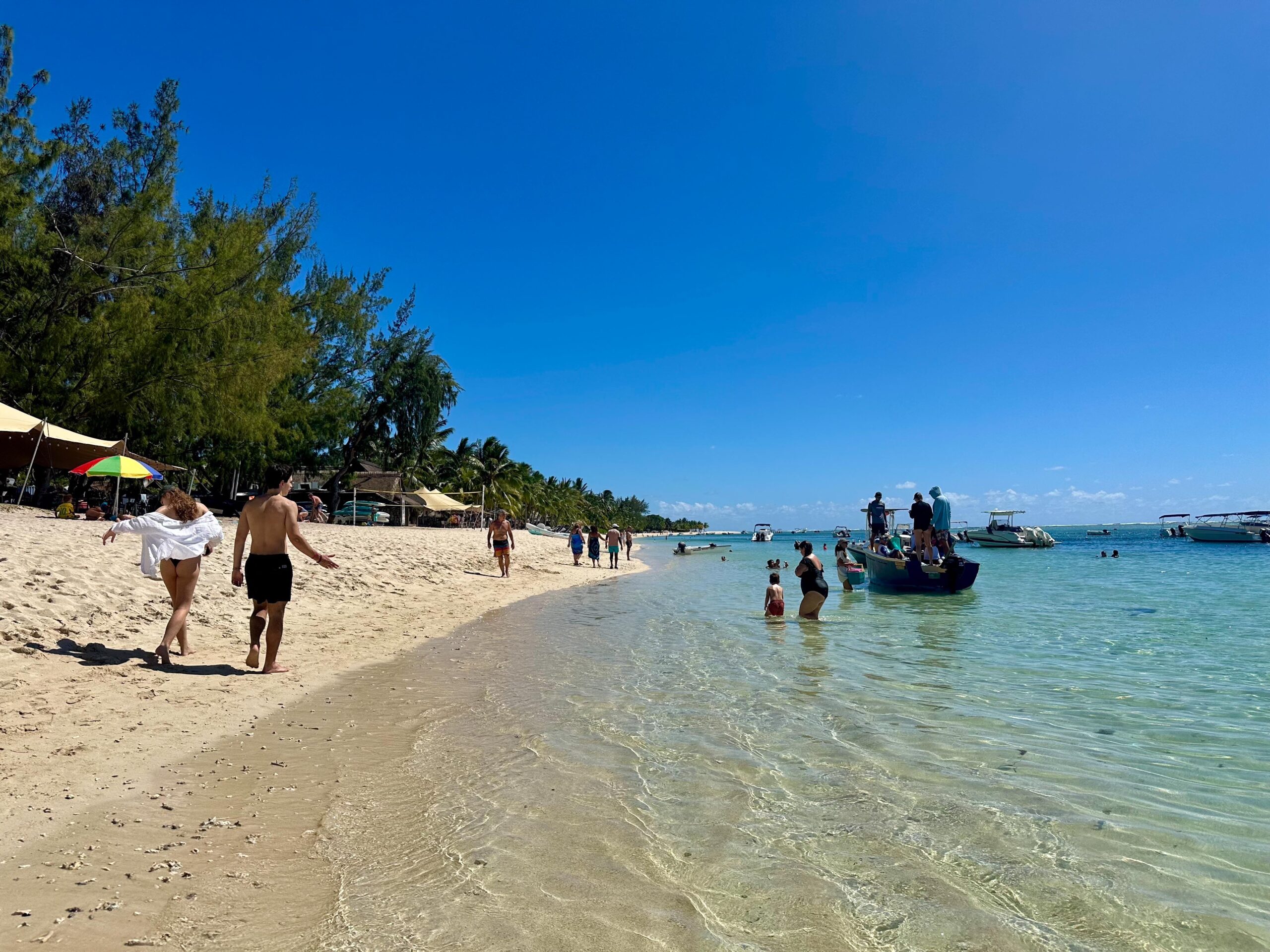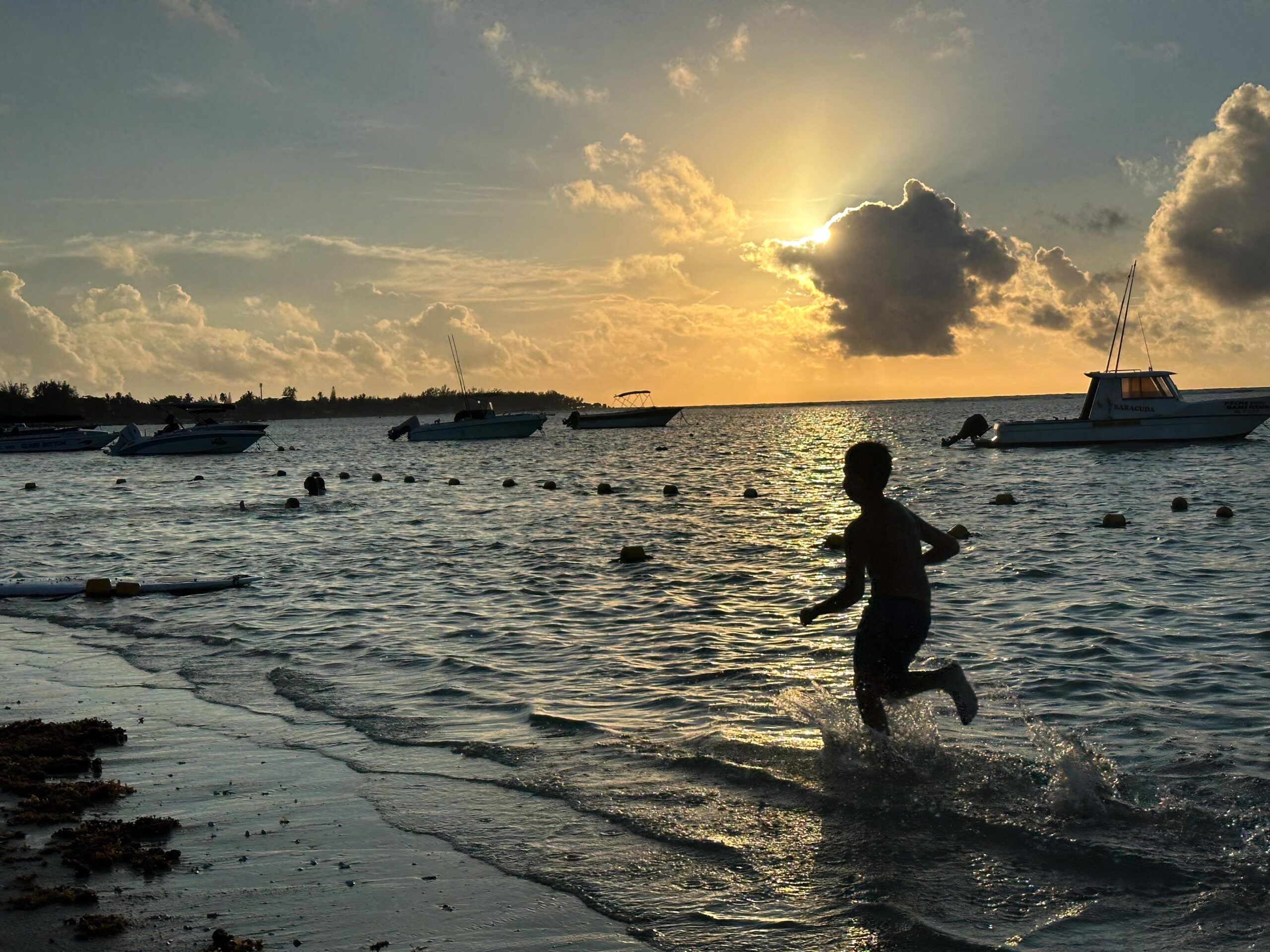 Revenind la plaja din Trou aux Biches, ne plac aici și plimbările la apus, când cerul și apa se colorează în roz. Ne place că sunt copaci și putem sta la umbră atunci când soarele arde prea tare. Ne place să vedem turiștii care joacă pétanque și ne plac întrunirile de familie ale localnicilor, pe plajă – ne bucurăm cu toții, împreună, de mare. Sunt foarte amabili, nimeni nu te deranjează și te simți în siguranță.