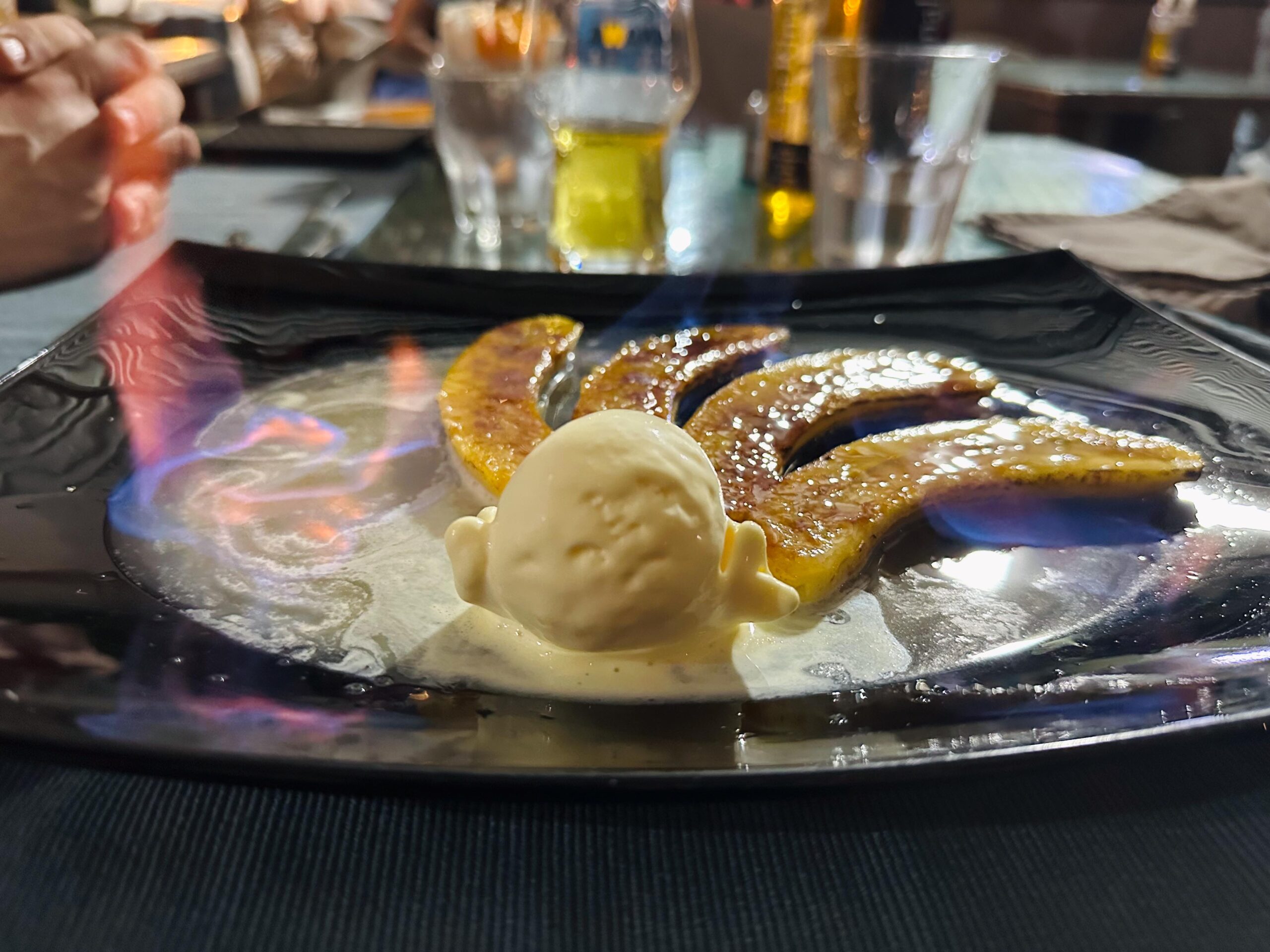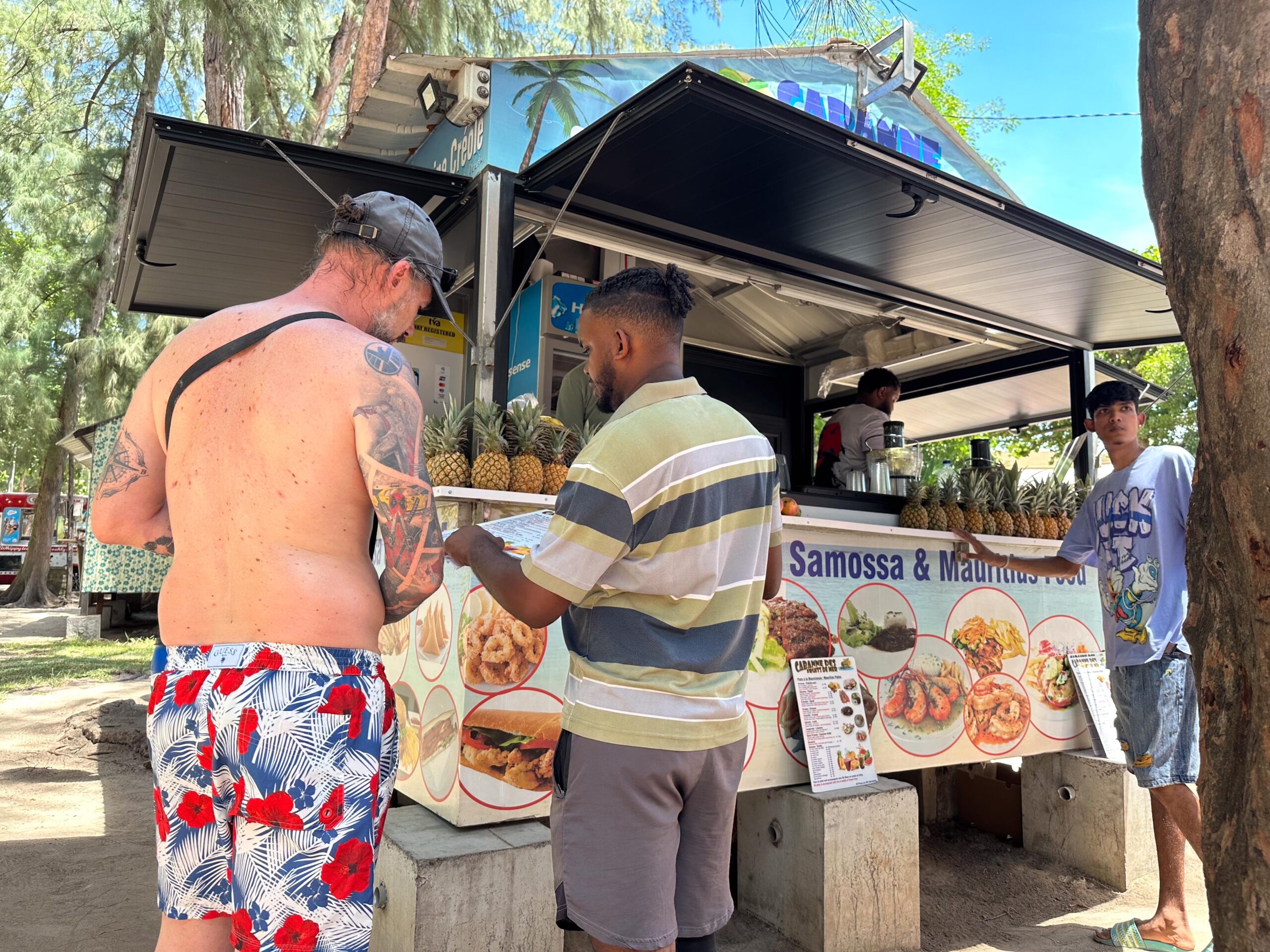 În Pereybere sunt multe locuri în care poți lua masa la un preț bun, iar street-food-ul maurițian este delicios. De mâncat, la prânz am optat în general pentru street-food. Am încercat diferite preparate de la gheretele de pe plajă și mâncarea a fost foarte bună: de la calamari prăjiți la wrap-uri cu pește sau pui – faratha sau roti, cum le spun ei, delicioase, orez, sendvișuri, cartofi prăjiți șamd. Seara am ales diferite restaurante, iar peștele și bananele flambate cu rom maurițian au fost preferatele noastre. Despre bucătăria creolă am mai scris aici.