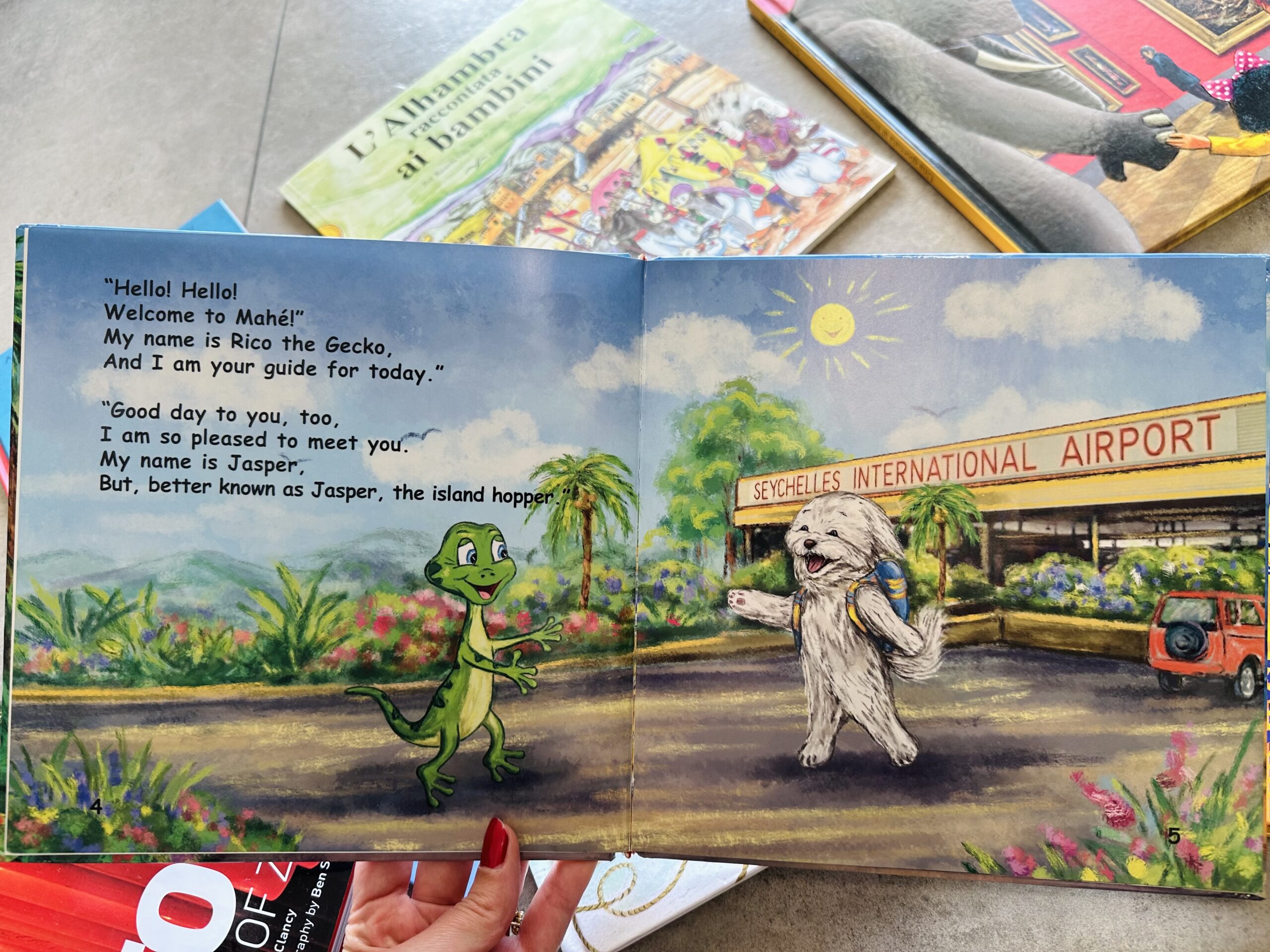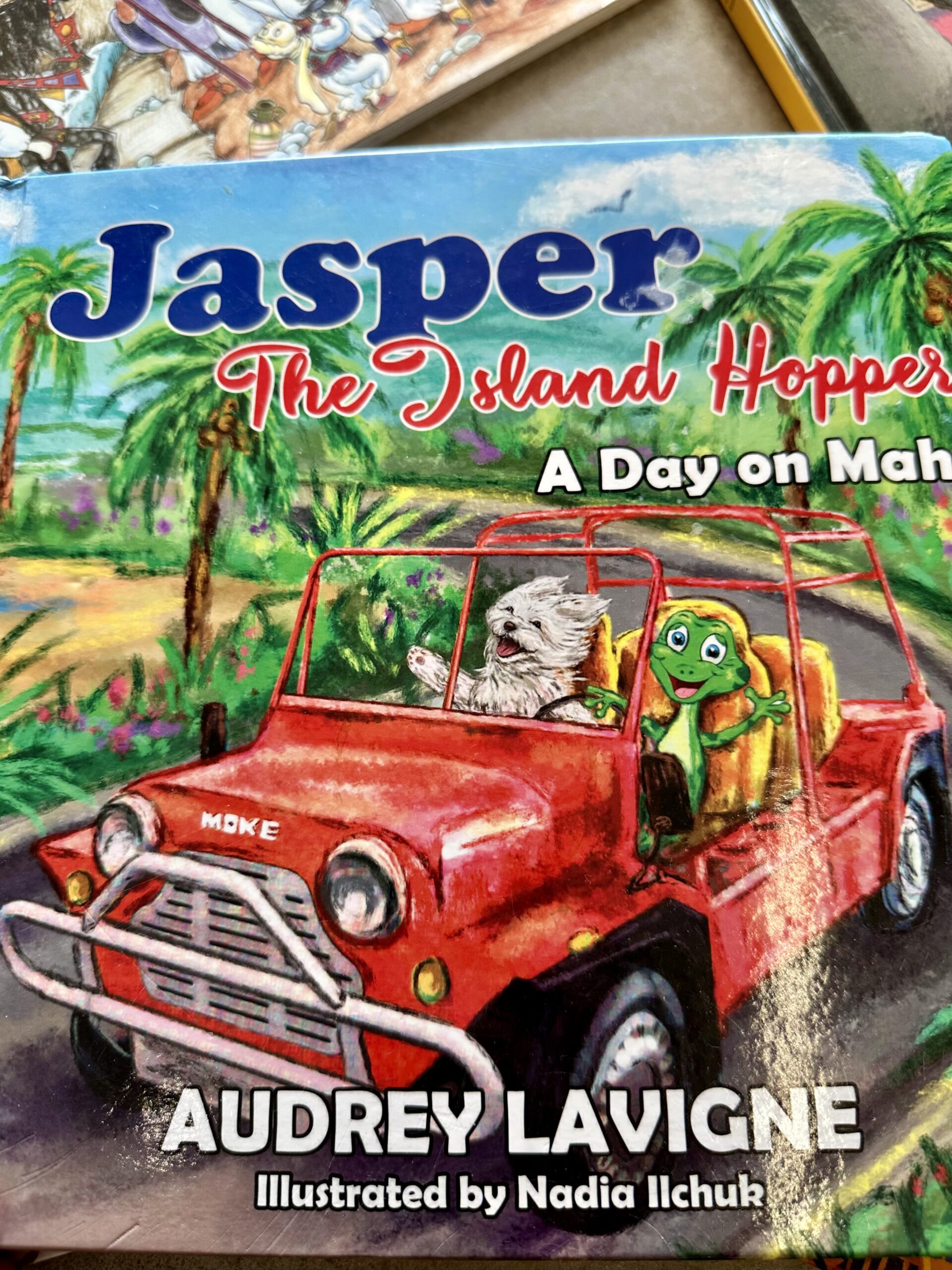 La aproape 5 ani, Catterina descoperă lumea, puțin câte puțin, în fiecare seara, când citim împreună. Preferata ei – o carte pe care am cumpărat-o din Seychelles, scrisă de o autoare locală, Audrey Lavigne: „Jasper – The Island Hopper, A Day on Mahe”, despre un cățel care descoperă insula plimbându-se cu un Mini Moke și ajută o fetiță să își găsească mama de care se pierduse. Și unde mai pui că Jasper seamănă perfect cu câinele nostru, așa că l-am rebotezat direct pe cel din carte 😇 Cartea a fost mult timp “pe repeat” la noi, deci v-o recomandăm cu drag.