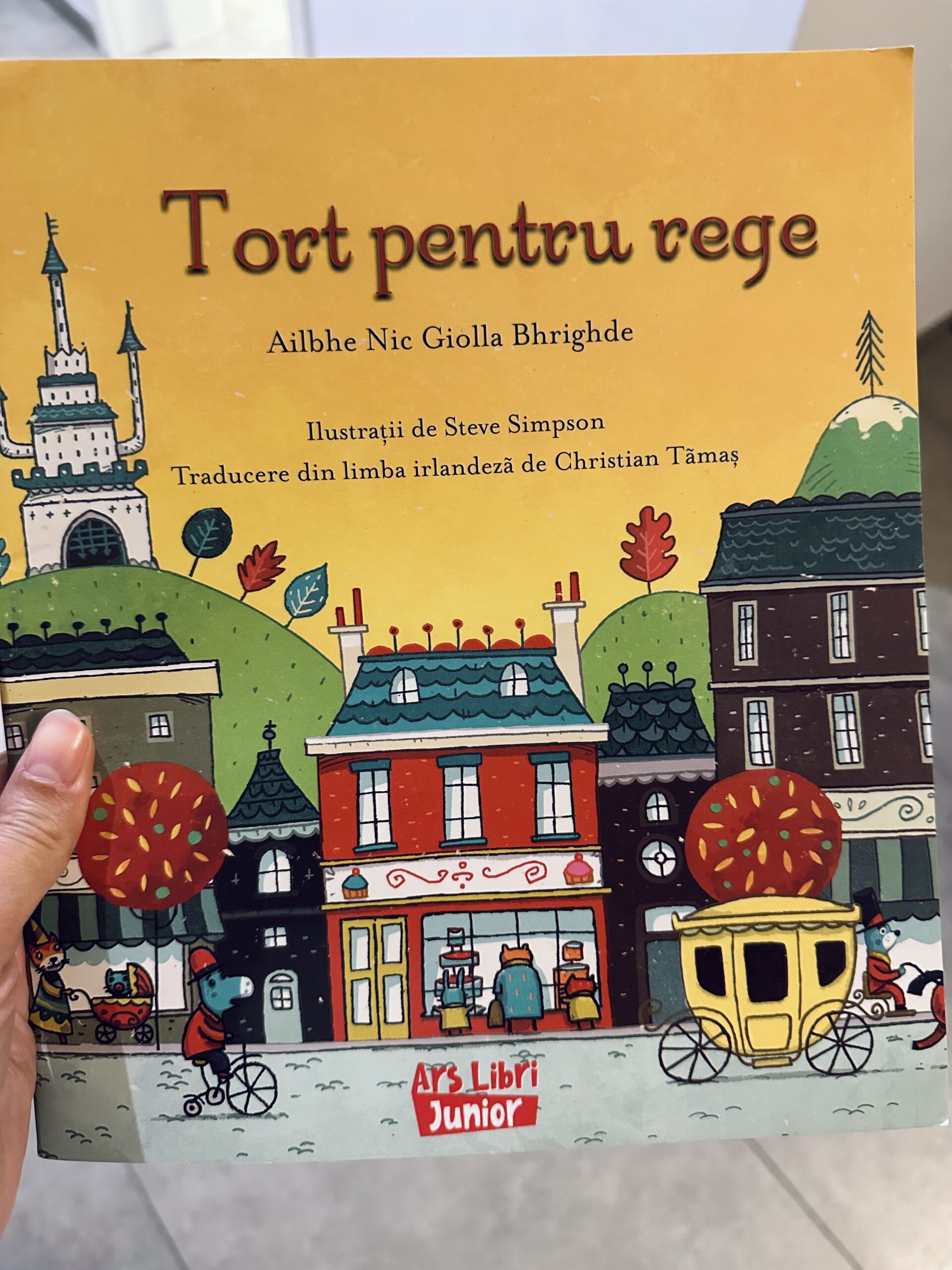 O altă descoperire frumoasă, pe care v-o împărtășim pentru că are niște ilustrații absolut minunate, este „Tort pentru rege”, o poveste irlandeză, de Ailbhe Nic Giolla Bhrighde, în traducerea lui Christian Tămaș. Ilustrațiile, cu torturi, șoricei și Roșcata Rubai, un patiser foarte ocupat,  îi aparțin lui Steve Simpson.